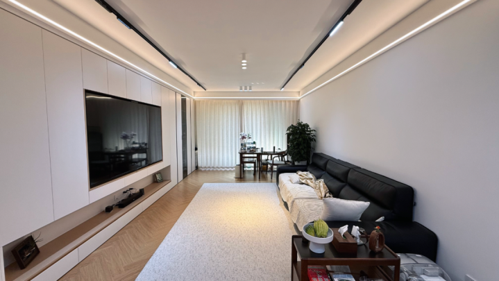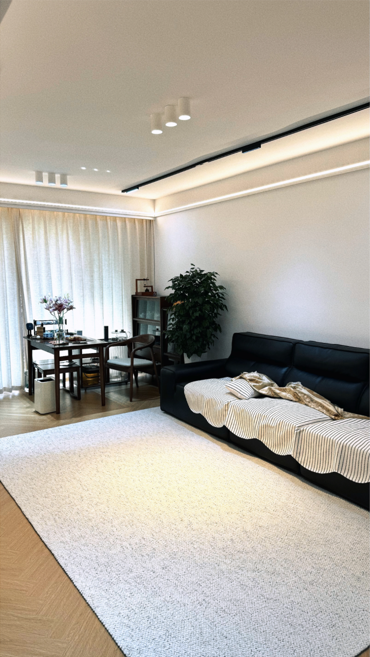 ①灯光要 “藏” 起来:像案例里这样,用线性灯、轨道灯结合,既能照亮空间,又能营造氛围,比单一的主灯更显高级且实用;