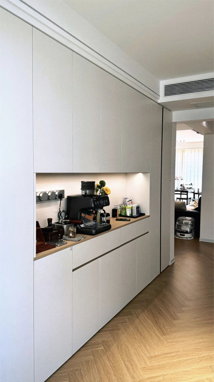 ②收纳要 “隐形”:定制柜体把杂物都收进柜门里,视觉上更整洁,住起来也更舒服~
