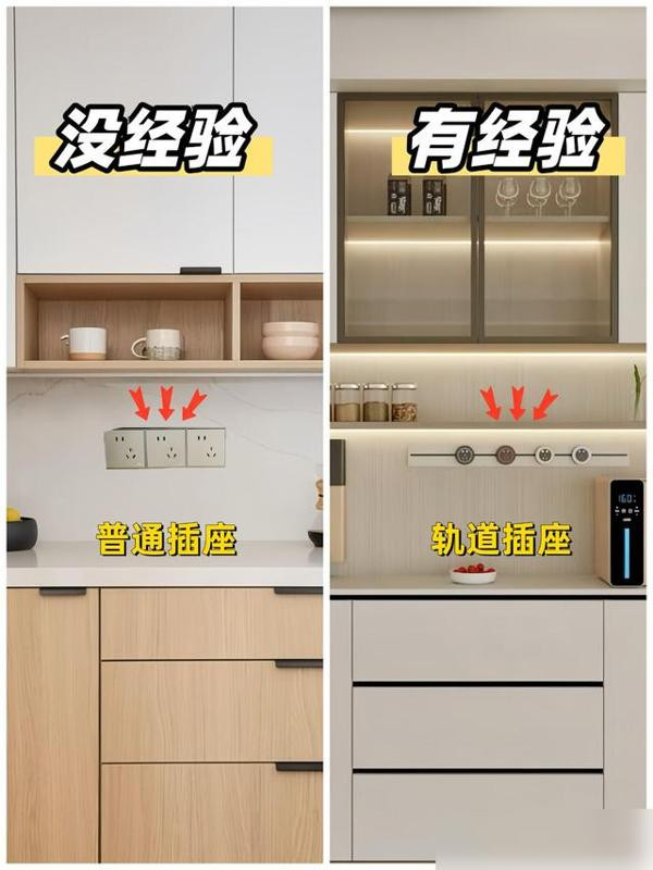 最崩溃的是那些“反人类”设计:我爸之前蹲在地上翻柜子底层的碗,腰都直不起来,后来装了外置抽屉——高度刚好到腰,拿碗直接拉出来,他说“这才叫给人用的柜子”;还有轨道插座,之前厨房就三个固定插座,电饭煲、破壁机、空气炸锅一起用,得拔来拔去,线缠成“鸡窝”,现在装了轨道插座,想插哪里插哪里,再也不用抢插座了,我妈做饭都变积极了!