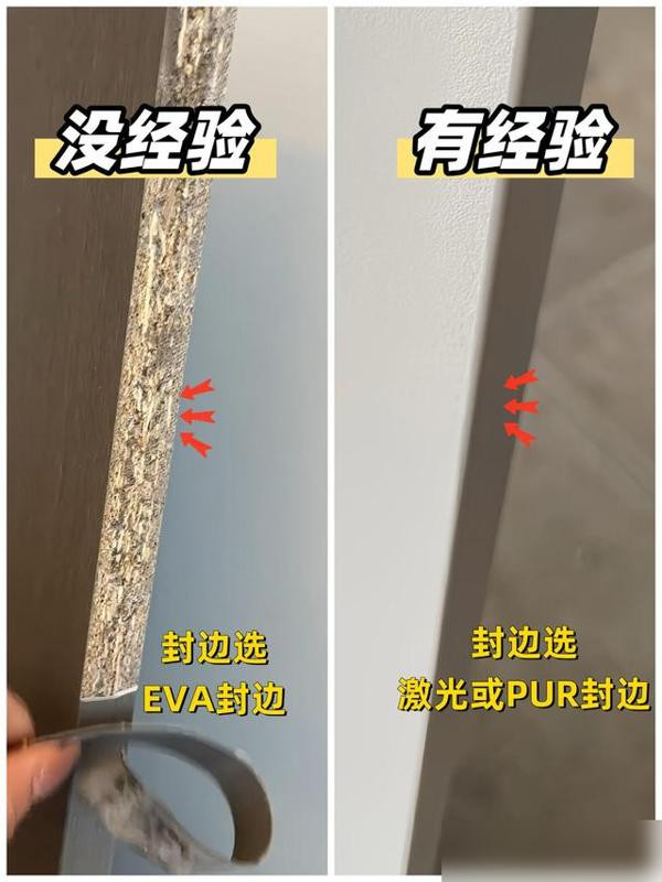 还有封边,我之前租的房子用EVA封边,厨房水汽大,半年就开胶,甲醛味熏得人喉咙痒,现在自己家选PUR封边,摸上去没缝隙,凑近闻也没味道,住着才安心。